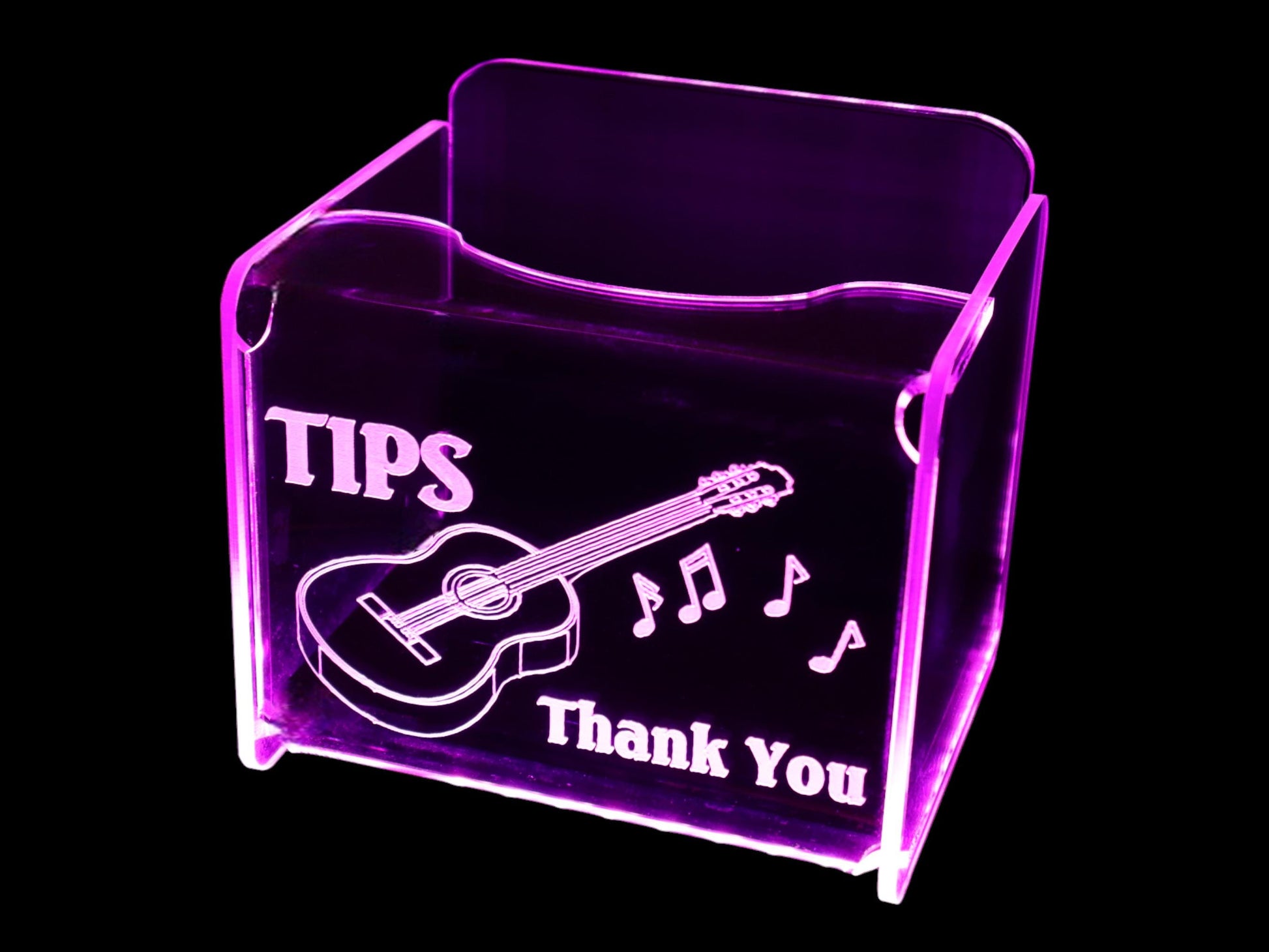 Glowing LED Acrylic Tip Box. Increase your tips by being noticed!