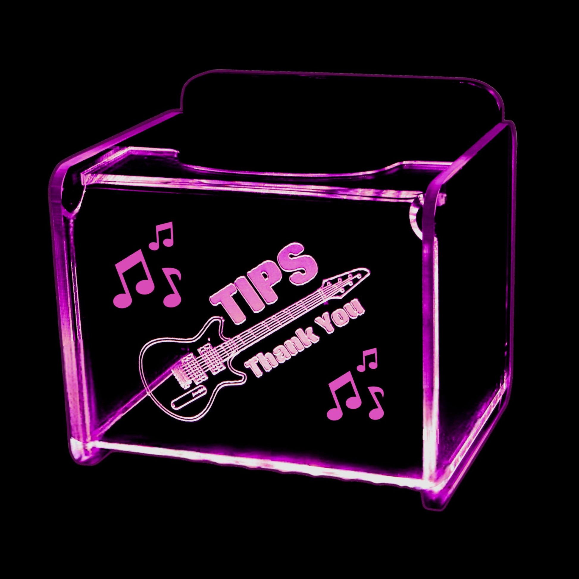 LED Glowing Tip Box- Electric Guitar for Musicians! Tip Jar -LED Tip Jar -Light up tip Jar -Ballot Box- Card Box- Musician Tip Jar