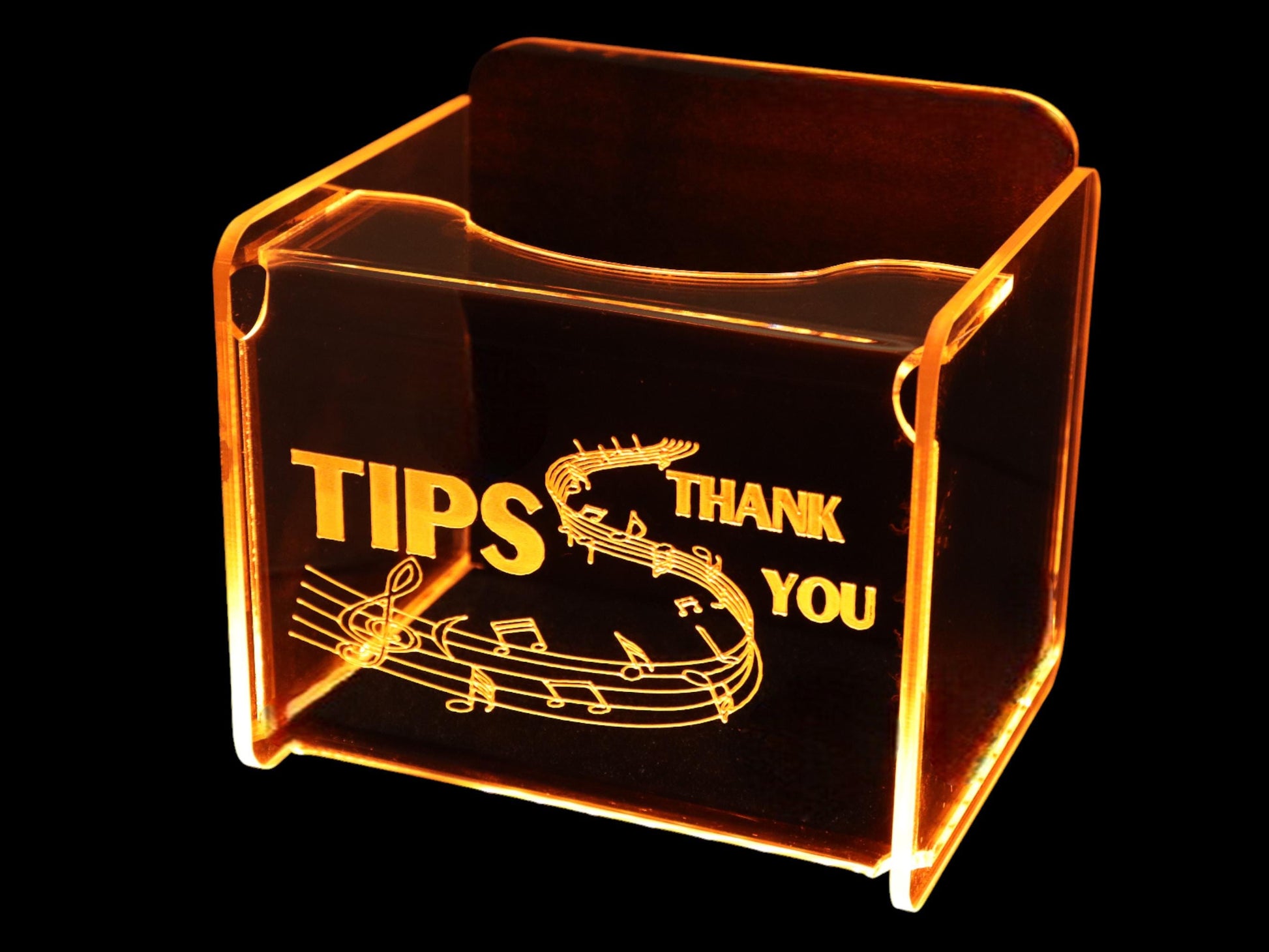 Glowing LED Acrylic Tip Box. Increase your tips by being noticed!