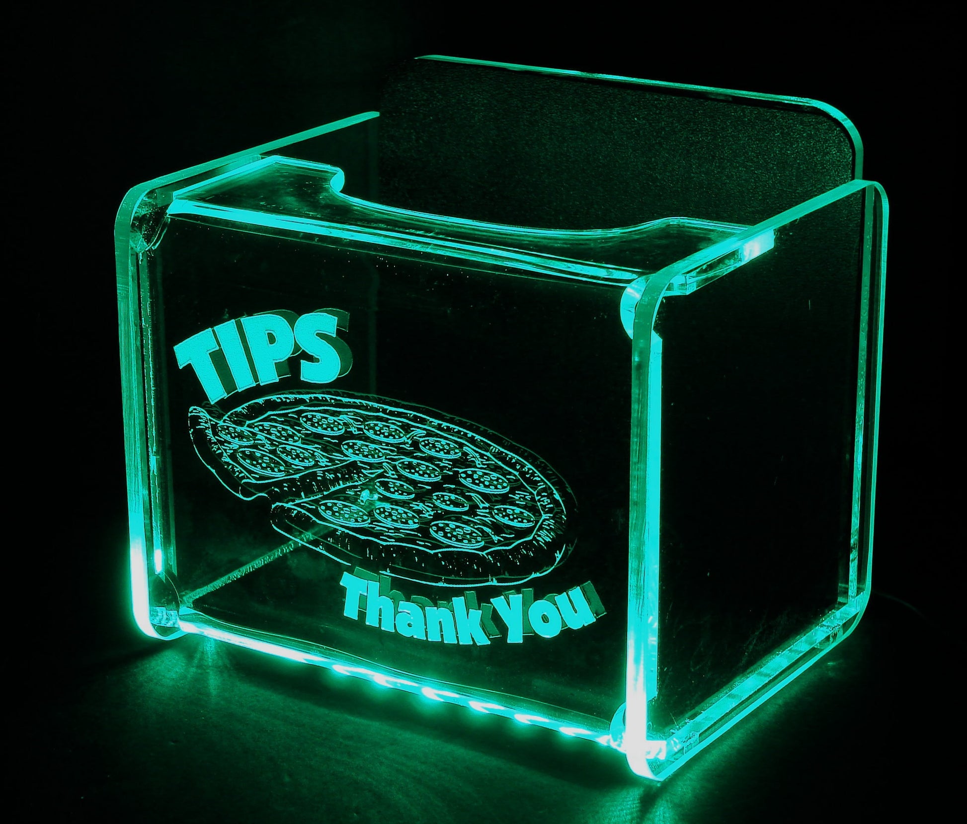 LED Glowing Tip Box- Pizzeria Design- Tip Jar -LED Tip Jar -Lighted Tip Jar - Restaurant Tip Jar - Made in USA!
