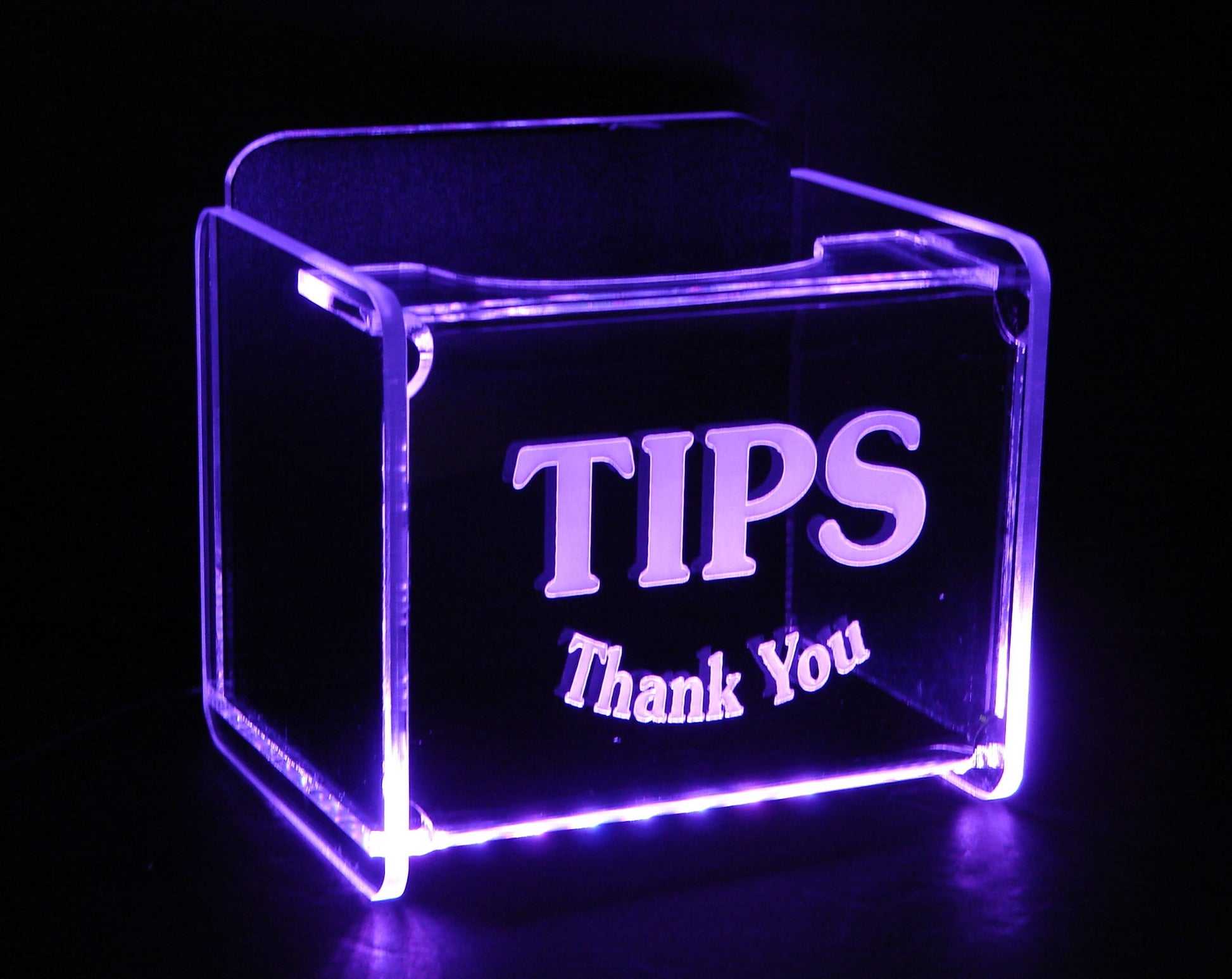 Glowing LED Acrylic Tip Box. Increase your tips by being noticed!