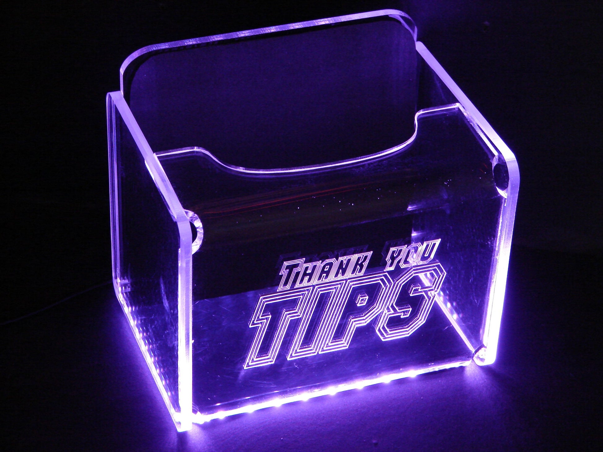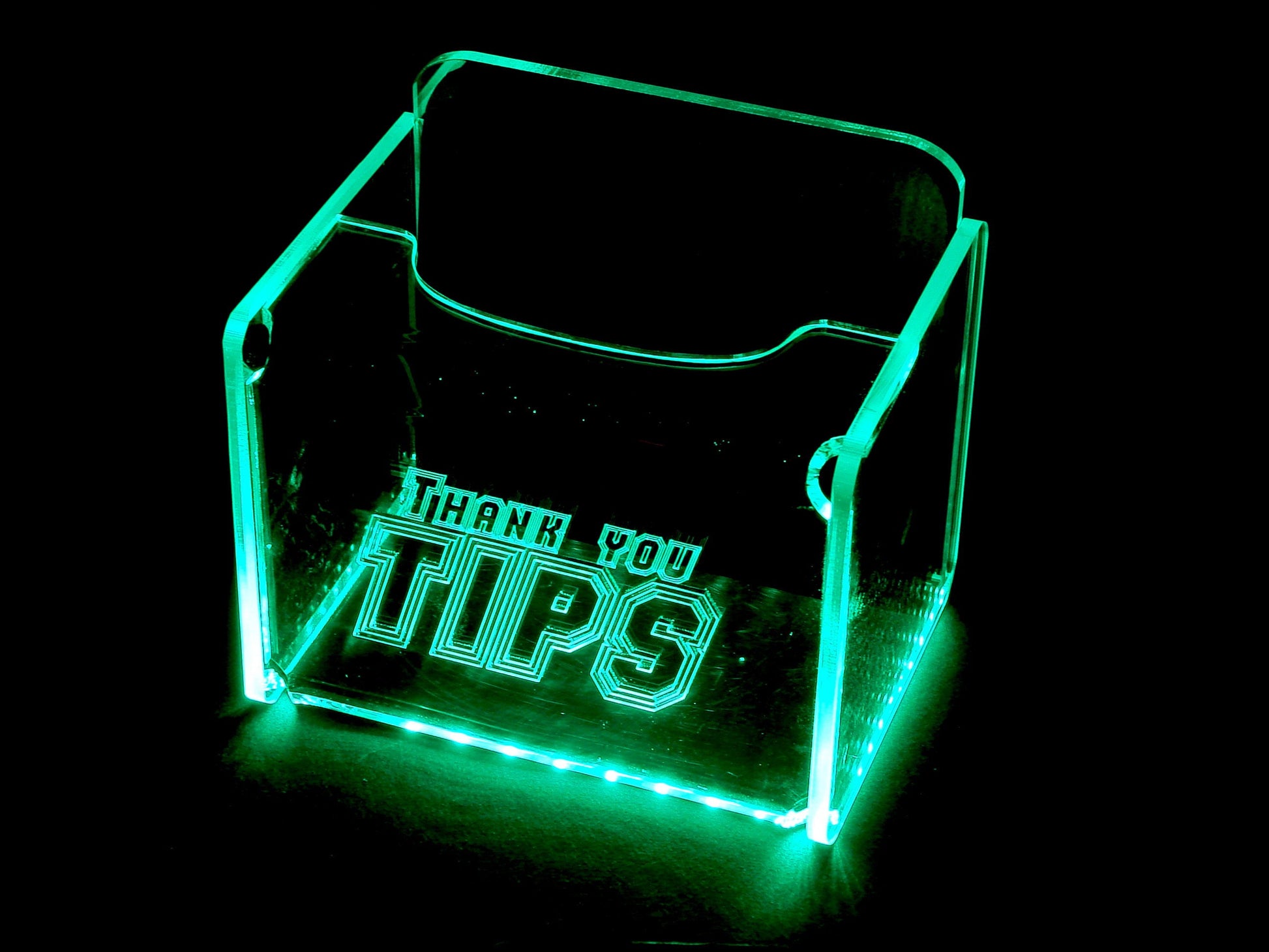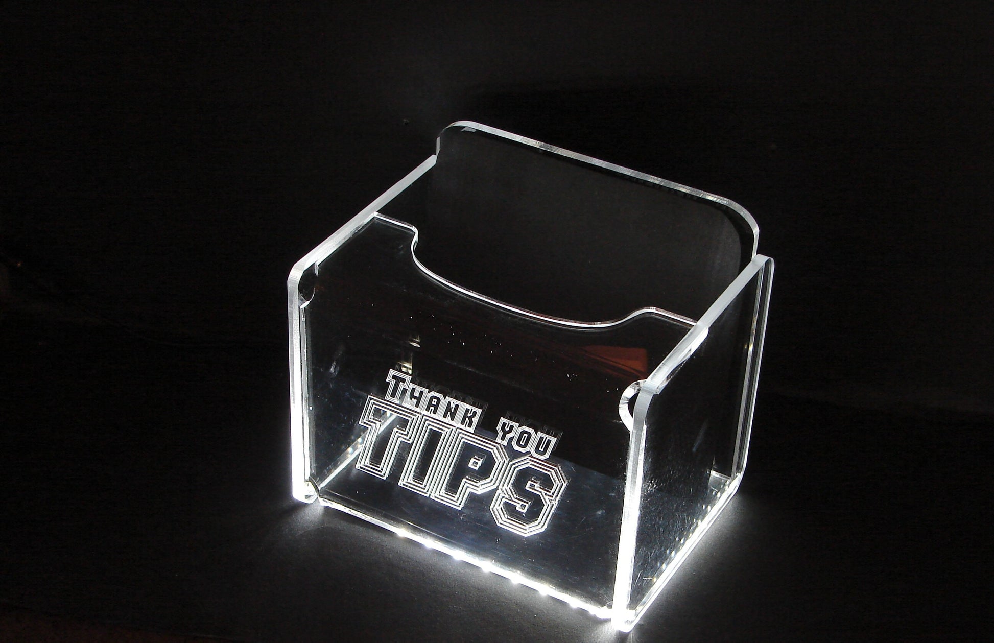 Glowing LED Acrylic Tip Box. Increase your tips by being noticed!