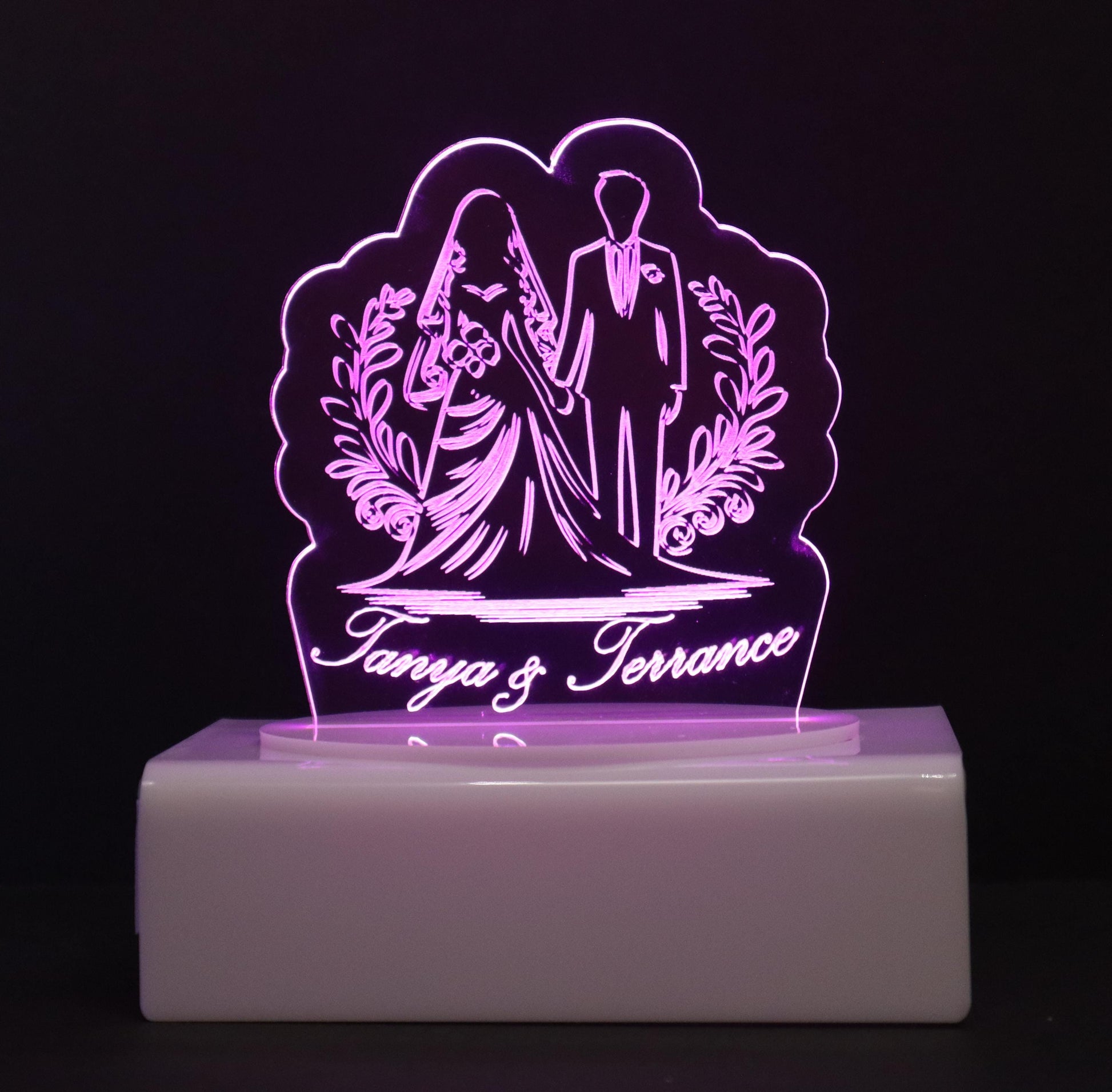 Personalized Cake Topper - Glowing LED - Engraved Acrylic - Wedding Couple Design